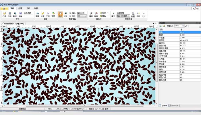 自行創(chuàng)制一鍵自動(dòng)分析向?qū)?/span>,適用于水稻、小麥、玉米、豆類、油菜籽、瓜子、蔬菜籽等各類農(nóng)作物的自動(dòng)精確考種、各類糧庫(kù)的蟲口自動(dòng)計(jì)數(shù),以及出苗數(shù)分析,顯示和輸出計(jì)數(shù)結(jié)果。