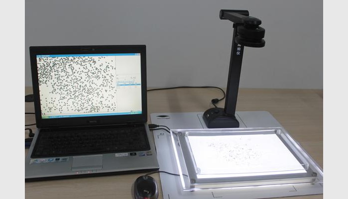 電子天平稱(chēng)出的重量(g)/核心系統(tǒng)智能數(shù)出的粒數(shù)×1000=千粒重(g/1000粒)。先用背光照明超薄燈板來(lái)拍照計(jì)數(shù),再將種粒倒入電子天平容器內(nèi),經(jīng)1秒鐘穩(wěn)定后自動(dòng)分析出千粒重,并輸入電腦。整個(gè)分析過(guò)程耗時(shí)小于9秒鐘。