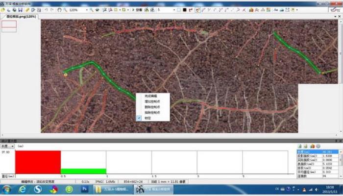 7、基于人工智能深度學(xué)習(xí)的原位土培根系圖自動(dòng)識(shí)別提取,自動(dòng)識(shí)別提取土培原位根系量≥80%(時(shí)間僅約2分鐘),極大減少交互引導(dǎo)修正分析根系的工作量?蓪(duì)原位土培根系圖像進(jìn)行交互引導(dǎo)分析、鎖定編輯根系路徑、修正根系的長短、粗細(xì)、位置等。具有鼠標(biāo)編輯點(diǎn)的跟隨放大鏡。能自動(dòng)拼接多張?jiān)桓祱D。