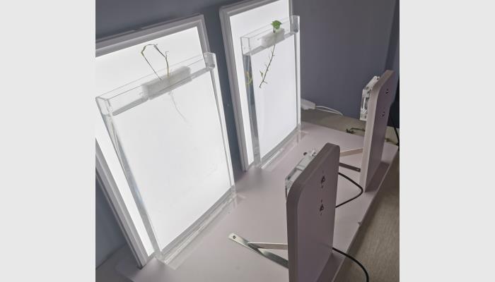 2、實(shí)時(shí)監(jiān)測4個(gè)視野的水培作物植株,標(biāo)配4套動(dòng)態(tài)生長監(jiān)測拍照成像硬件(含4個(gè)240mm 寬*380mm高的透明培養(yǎng)扁盒)。
