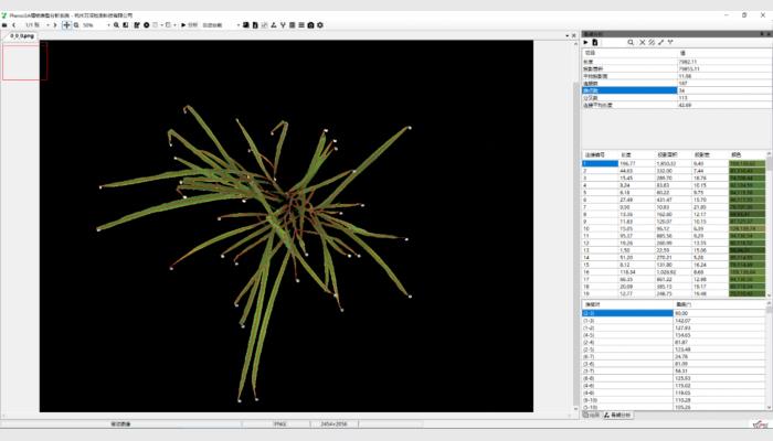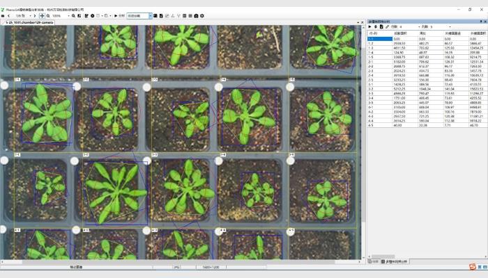 (5)其它:不同生長時期自動批量化處理分析,多植株網(wǎng)格分析,直線、角度等幾何測量,各測量結(jié)果可編輯修正。