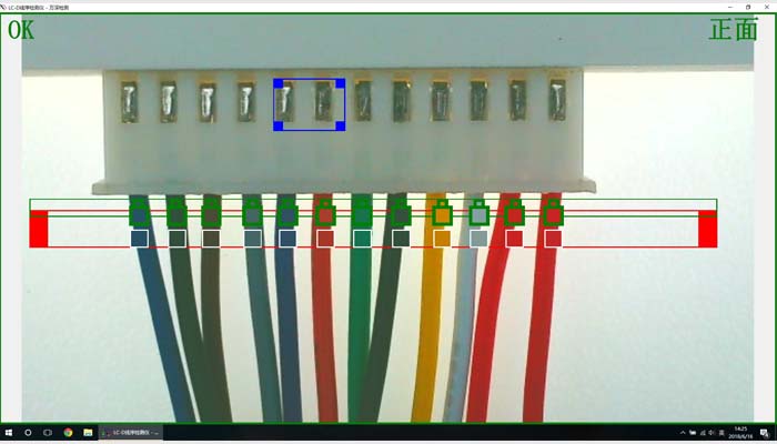 4、抗干擾能力強(qiáng),各種顏色(藍(lán)紫線 黑棕線等)及膠殼線上有字符都不影響檢測(cè)結(jié)果,甚至與背景顏色接近的白色線和反光較強(qiáng)的鐵氟龍線也能有效定位檢測(cè),PCB端也適用。